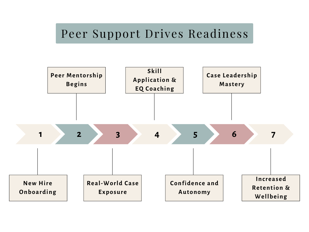 I designed this initiative from the ground up, pairing new hires with experienced case managers for weekly touchpoints throughout their onboarding. Each pair received flexible tools: conversation prompts, confidence-building activities, and reflection guides that encouraged emotional resilience and case leadership development.